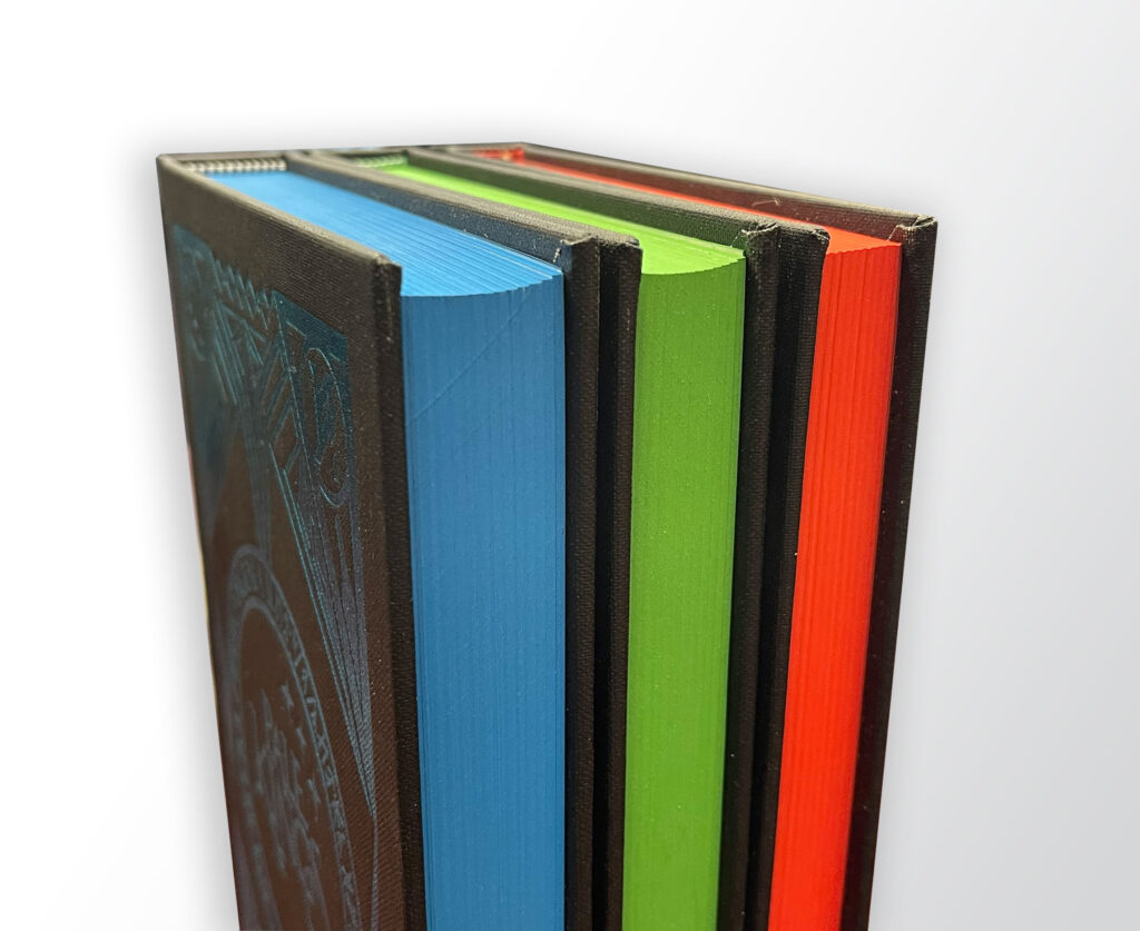 - Example Use: Common in special editions of contemporary novels or collector’s editions, like black sprayed edges on a fantasy novel to evoke mystery.